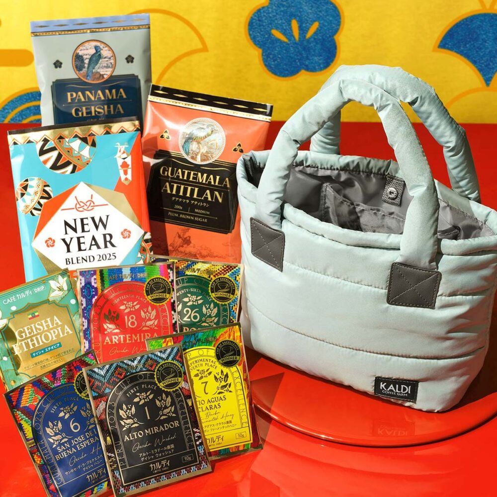 | 内容 | ・コーヒー豆(フィルター用挽きor豆)3種・ドリップコーヒー6種 ・コーヒー豆3種(ニューイヤーブレンド2025、パナマ ゲイシャ、グアテマラ アティトラン)各200g ・ドリップコーヒー(カフェカルディドリップ ゲイシャ エチオピア×4個、 カフェカルディドリップ ペルー2023カップ・オブ・エクセレンス 1位×1個/18位×1個、 カフェカルディドリップ グアテマラ2023カップ・オブ・エクセレンス 6位×1個、 カフェカルディドリップ ブラジル2023カップ・オブ・エクセレンス 7位×1個、 カフェカルディドリップ メキシコ2023カップ・オブ・エクセレンス 26位×1個) ・バッグ |