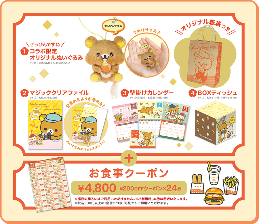ロッテリアの福袋は4年連続でリラックマとコラボしています。